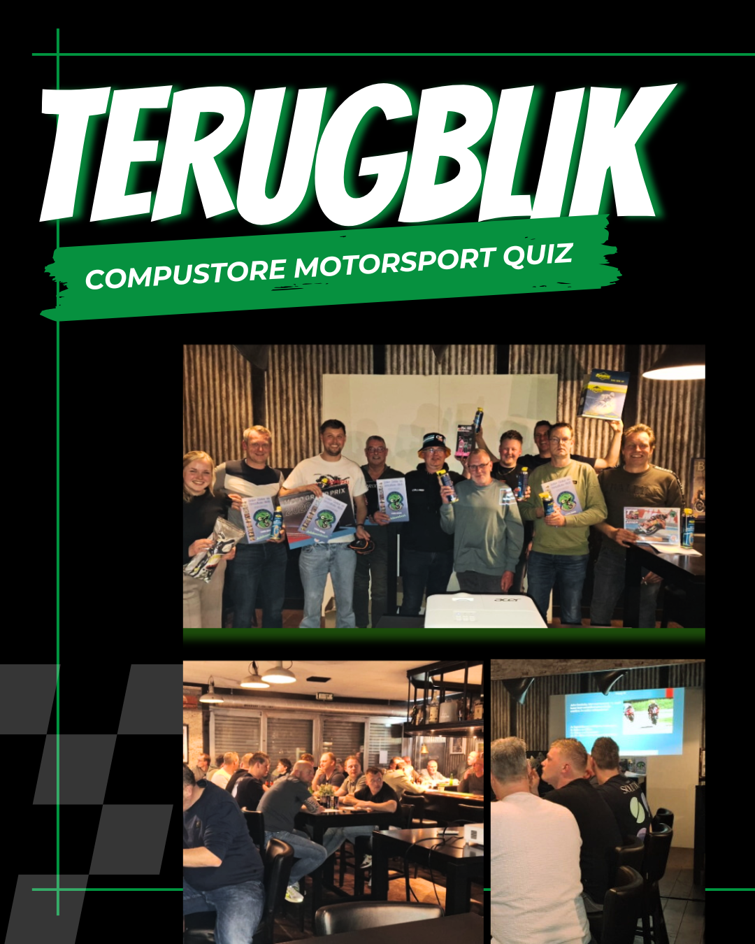 Het was al een jaar of 13 geleden dus het mocht ook wel weer eens.. Afgelopen vrijdagavond rond 20.00 uur zaten ruim 30 kenners van de motorsport en kwis liefhebbers klaar in ons clubhuis om te beginnen aan de 60 vragen tellende Compustore motorsport kwis 2026. Quizmasters Bert van der Sluis en Henk Haasjes hadden de voorbije winter gebruikt om de vragen te bedenken en alhoewel de meeste vragen meerkeuze waren en je dus altijd 25% kans had op een goed antwoord waren de zuchten en steunen al gauw te horen. Blijkbaar viel het allemaal toch wat tegen..