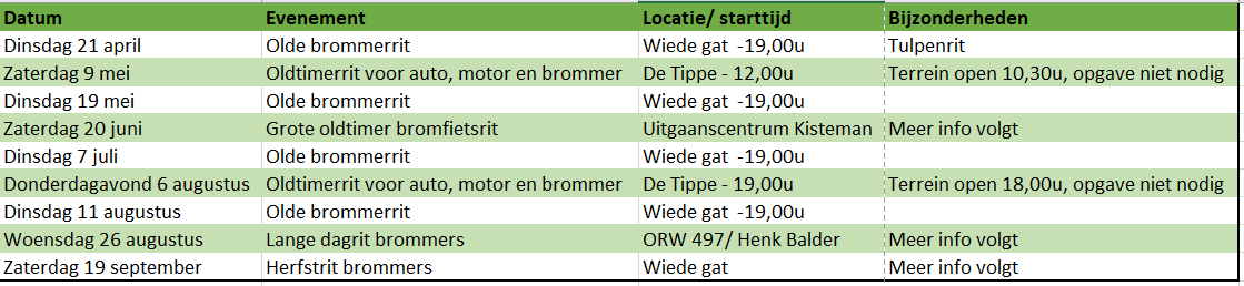 Ook in 2026 staan er weer twee grote oldtimerritten op onze kalender. De eerste rit is op zaterdag 9 mei. Het evenemententerrein De Tippe is dan de startplaats voor een mooie rit voor auto’s, motoren en bromfietsen. Voorwaarde is dat het voertuig minimaal 25 jaar oud dient te zijn.
